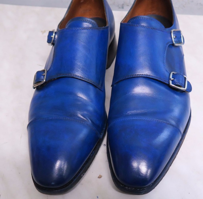 Ostatnio na nasz warsztat trafiły buty Yanko. Były to podwójne monki, używane przez Klienta od ponad roku. Buty, pomimo iż stosunkowo wygodne, nie za bardzo podobały się Klientowi ze względu na oryginalny kolor, oraz tendencję skóry do zarysowań.