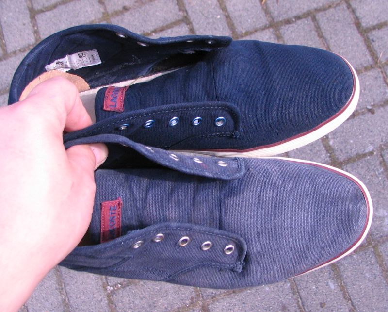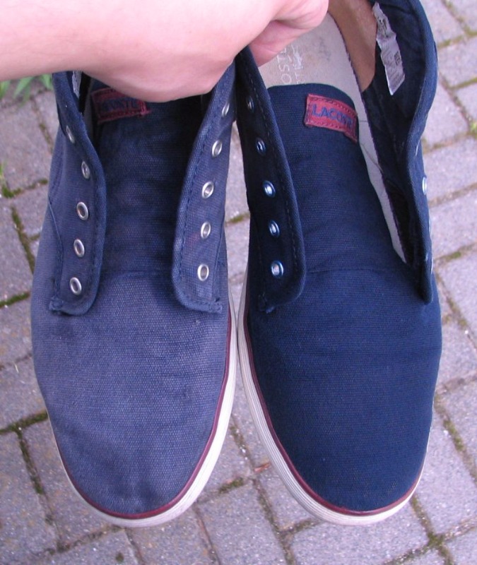 Porównanie butów Lacoste - jeden but oryginalny, drugi po farbowaniu :