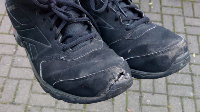 Buty sportowe które posiadały dziury na czubkach cholewek :