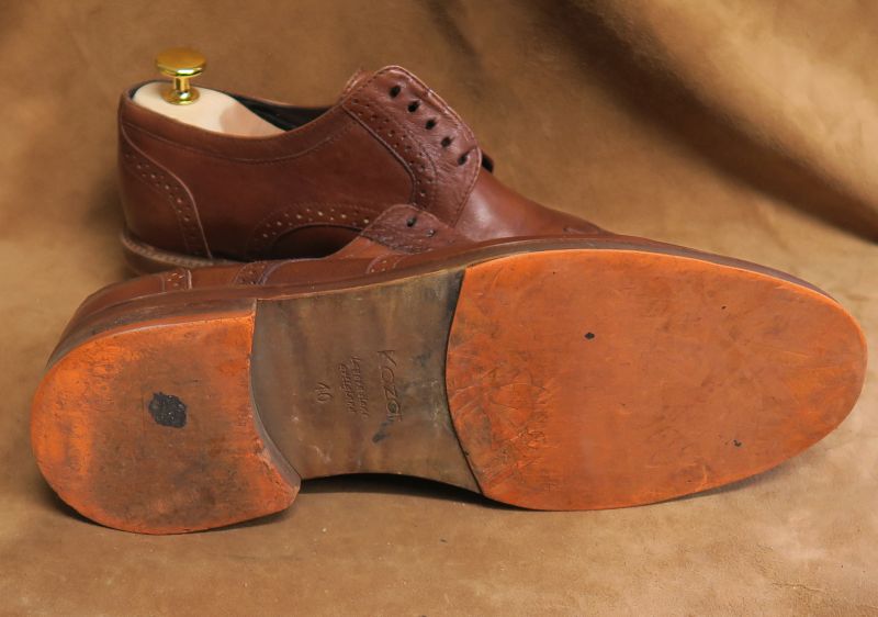 Brązowe brogsy Kazar przed i po naprawie.