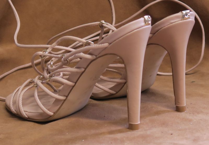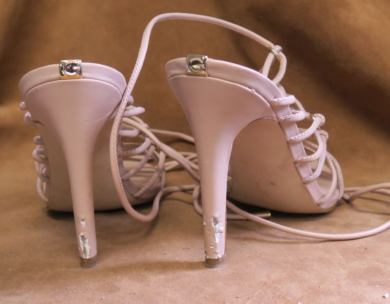 Sandałki Guess, już po wykonaniu nowych obciągów skórzanych na obcasach :