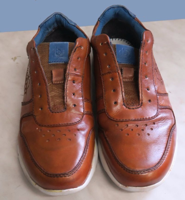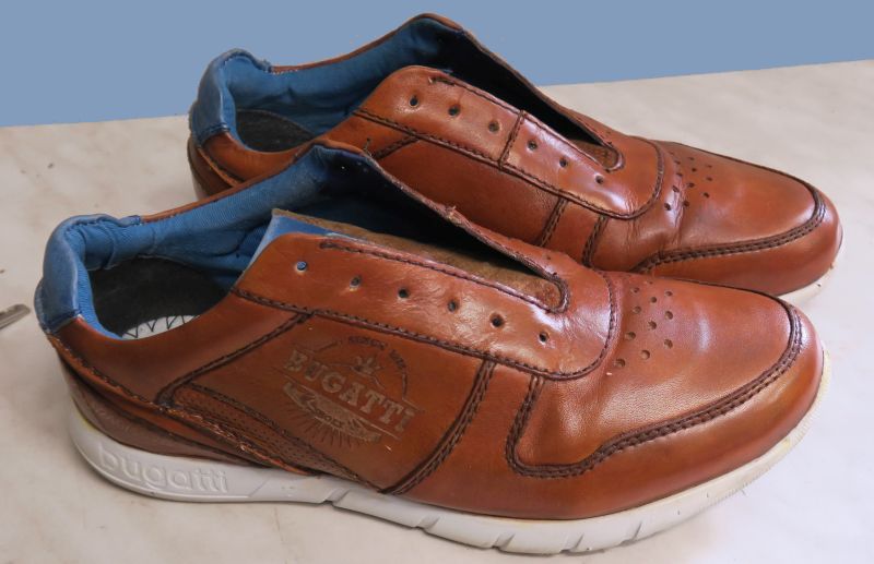 buty marki Bugatti, które potrzebowały odnowienia, małej renowacji koloru. Na powierzchni skóry jednego z butów, doszło do lekkiego odbarwienia, ale przy okazji tej renowacji, dokonaliśmy ożywienia koloru na powierzchni całych butów.