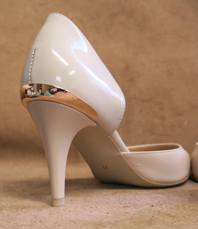 but po prawej po skróceniu obcasa, po lewej oryginalna wysokość