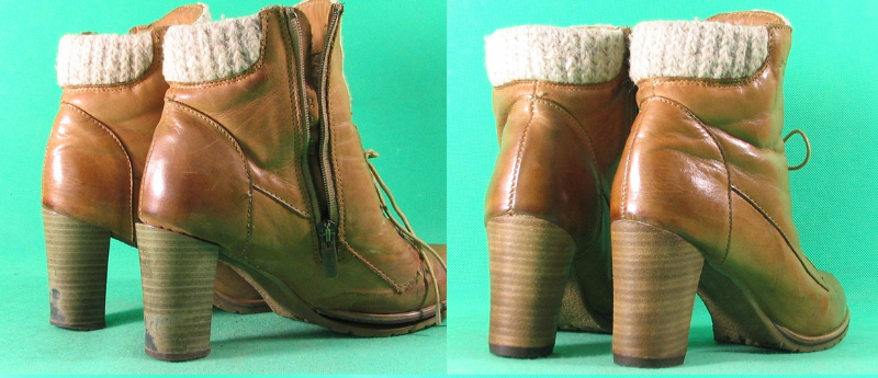 Botki posiadały w oryginale obcasy, które były lakierowane, a wzór przypominał imitację skóry. Podczas użytkowania obuwia, stosunkowo szybko lakier na obcasach uległ wytarciu, przez co nie prezentowały się one zbyt okazale.