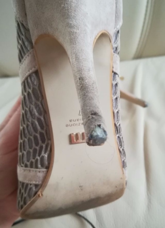 W przypadku tych bucików, najlepszym rozwiązaniem byłoby wykonanie nowych obciągów skórzanych obcasów. Oczywiście, identyczny materiał jak w oryginale ma tylko producent, jednakże posiadamy w serwisie bardzo duży wybór skór, poza tym współpracujemy z hurtowniami, dzięki czemu jest duże prawdopodobieństwo, że uda się dobrać prawie identyczną skórą.