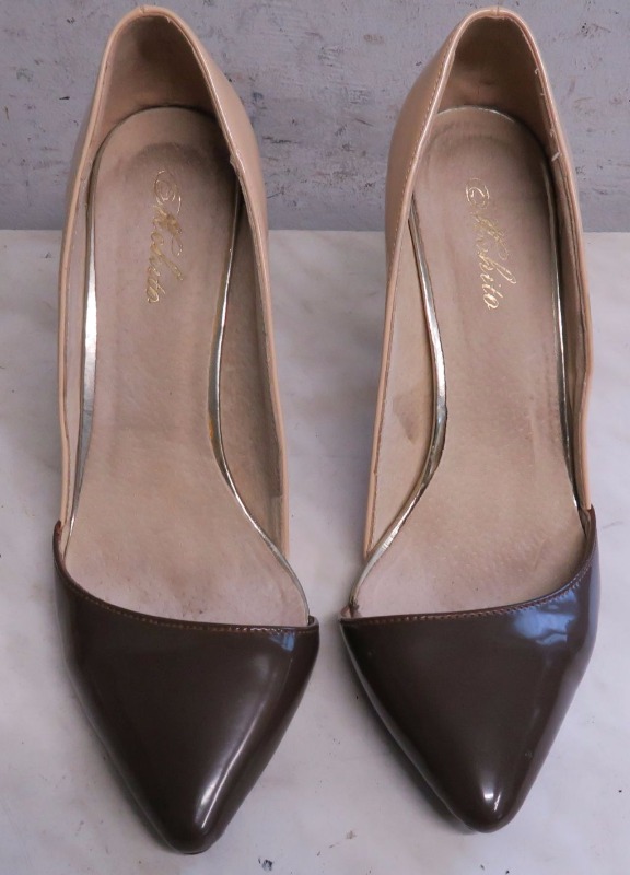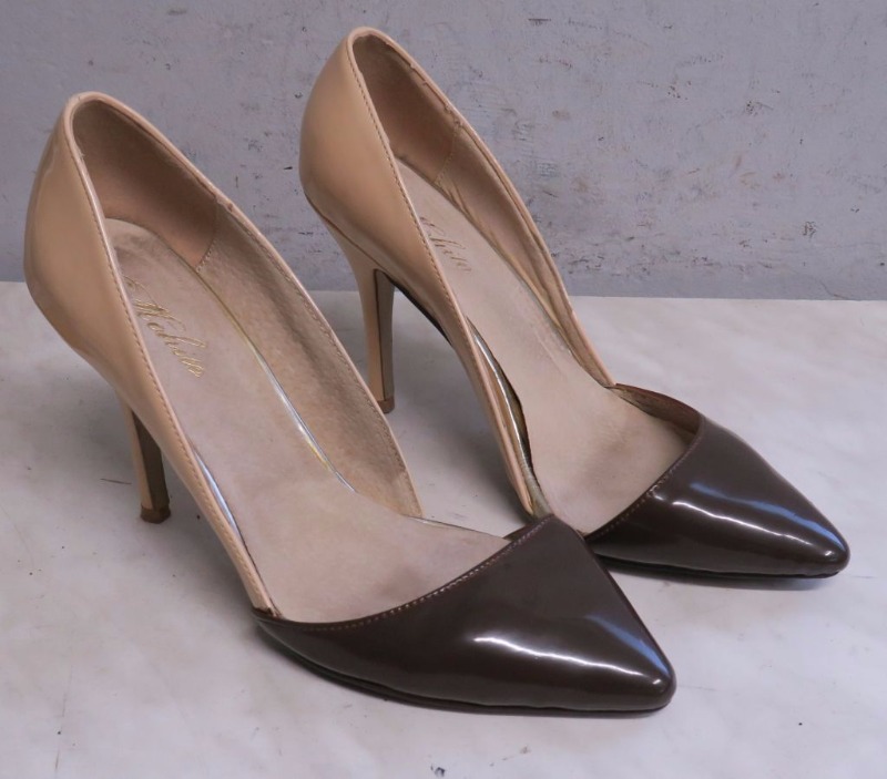 W brzoskwiniowych czółenkach Mohito musieliśmy dokonać całościowego farbowania przodów cholewek. Oryginalny kolor był dosyć trudny do uzyskania, w związku z czym zapadła decyzja o farbowaniu na ciemny odcień cappuccino. Kolor bardzo zbliżony do oryginalnego wybarwienia brzegów spodów.