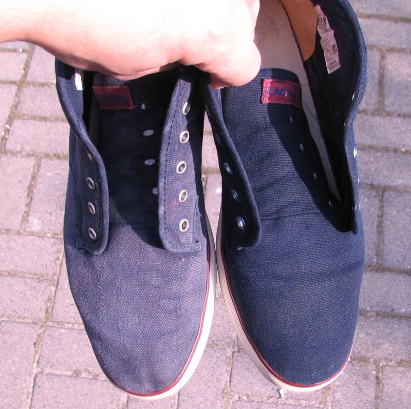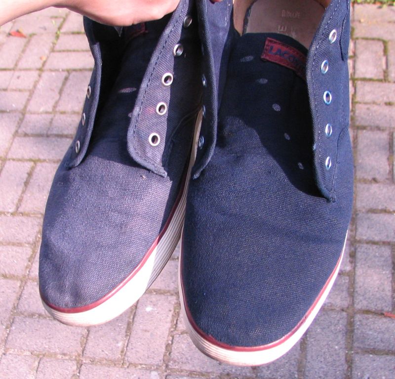 Porównanie butów Lacoste - jeden but oryginalny, drugi po farbowaniu :