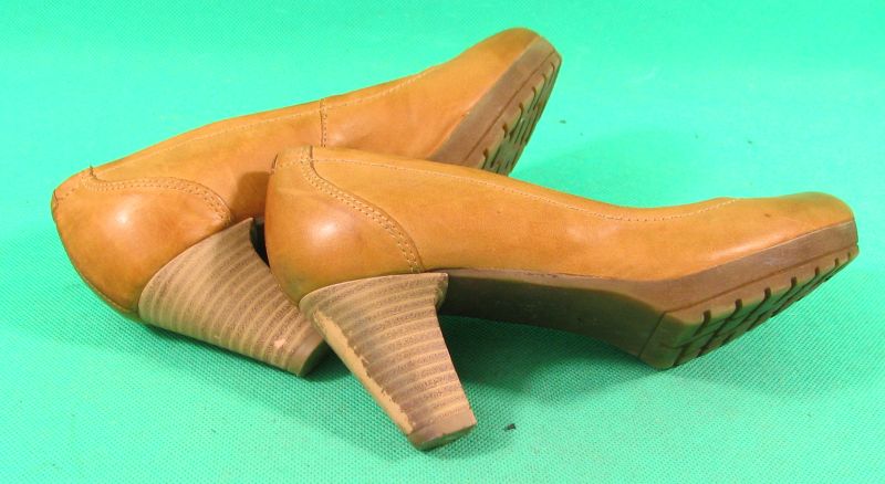 Naprawione obcasy. Zostały na nich wykonane obciągi skórzane z bardzo mocnej i odpornej na uszkodzenia skóry :