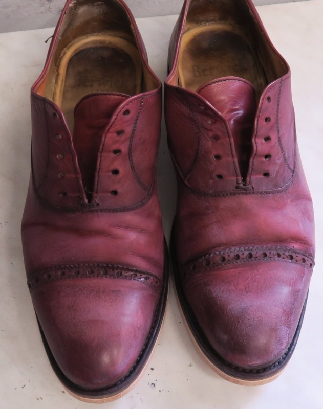 Buty Berwick z ogromną ilością zaschniętych warstw kremów i past na cholewkach :