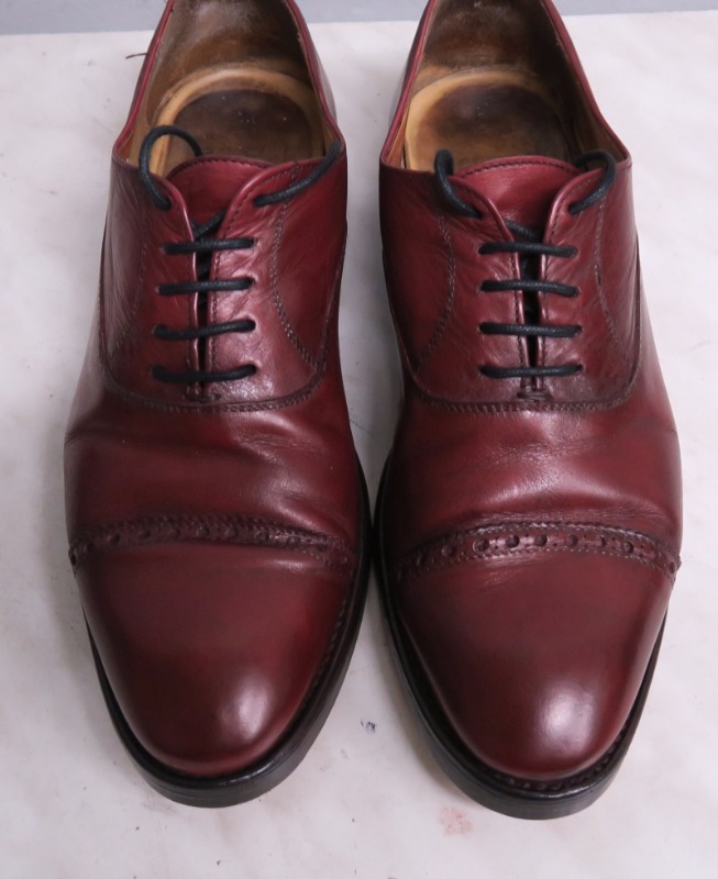 Buty Berwick po kompleksowej renowacji cholewek. Skóra została rekoloryzowana, oraz odpowiednio wykończona kremami i woskami. Polecamy przy tym zainteresowanie się środkami do pielęgnacji obuwia z naszego sklepu internetowego - tutaj .