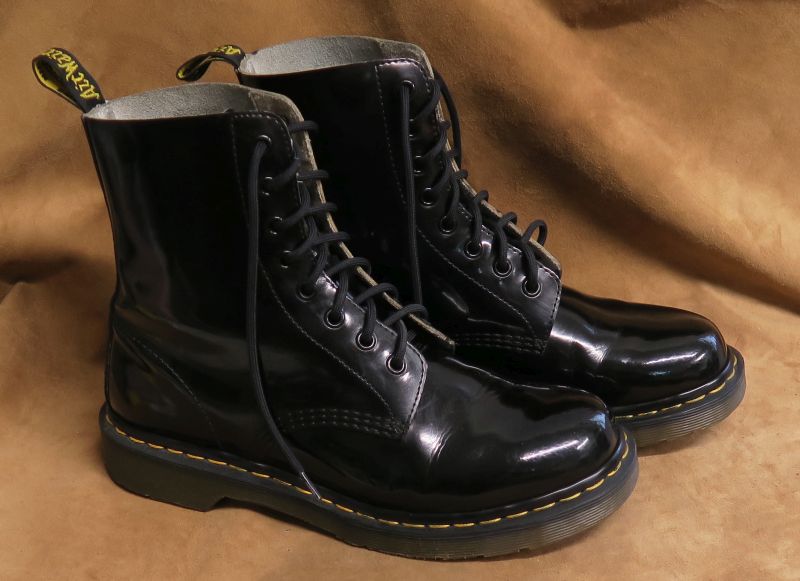 farbowania butów Martensów. Martensy, są wykonywane z dosyć specyficznej skóry, najczęściej skóry tzw. polerowanej. Istnieją też wersje, w których buty wykonane są ze skóry lakierowanej.