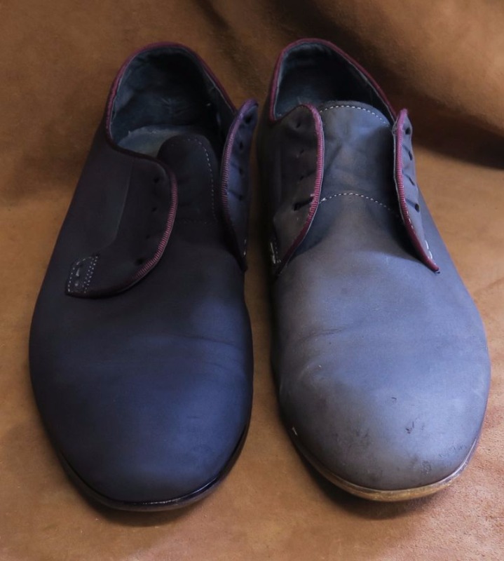 Po farbowaniu, w butach wykonane zostały jeszcze nowe fleki, oraz dokonaliśmy sklejenia podpodeszew, bowiem uległy one rozwarstwieniu.