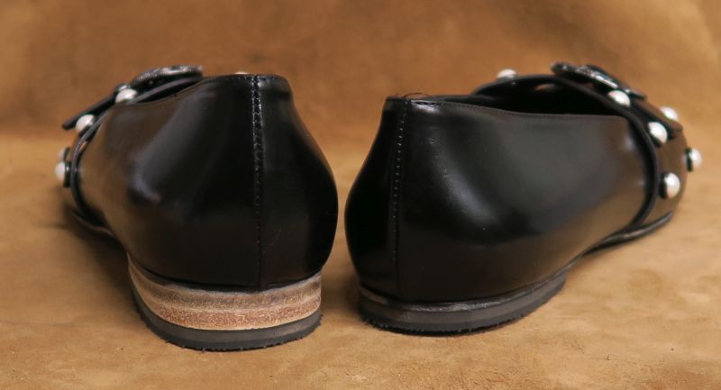 W tych samych butach, dokonaliśmy jeszcze coś innego. Podwyższyliśmy obcas w jednym z butów. Zawsze, kiedy klientka ma jedną nogę krótszą, pozostają dwie opcje do wyboru :