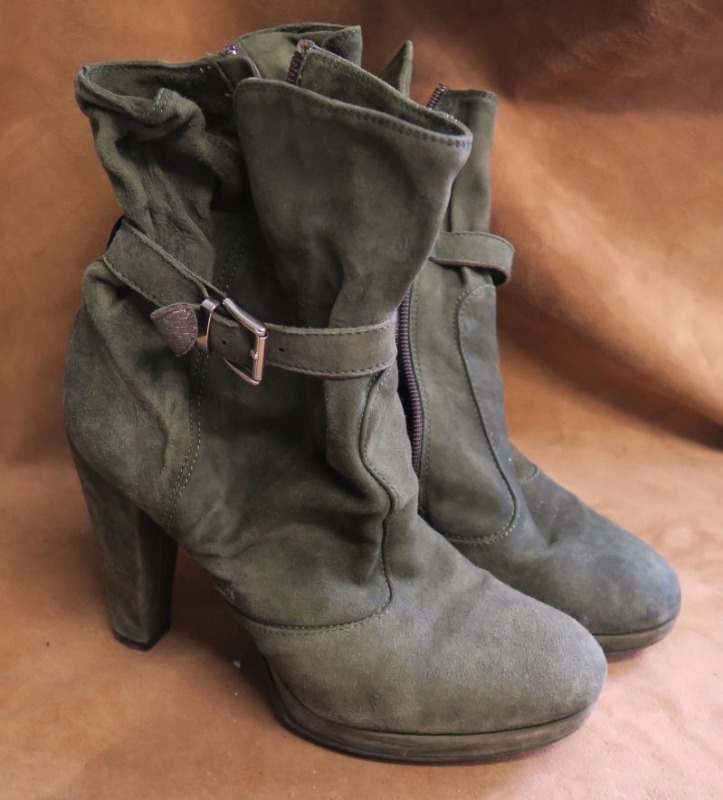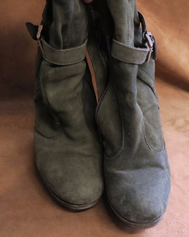 Botki zamszowe po farbowaniu. Skóra została dogłębnie oczyszczona i poddana rekoloryzacji :