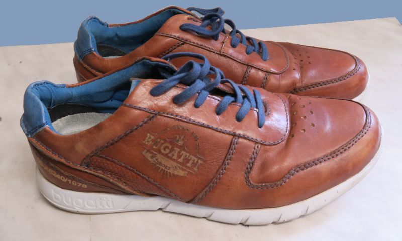 buty marki Bugatti, które potrzebowały odnowienia, małej renowacji koloru. Na powierzchni skóry jednego z butów, doszło do lekkiego odbarwienia, ale przy okazji tej renowacji, dokonaliśmy ożywienia koloru na powierzchni całych butów.