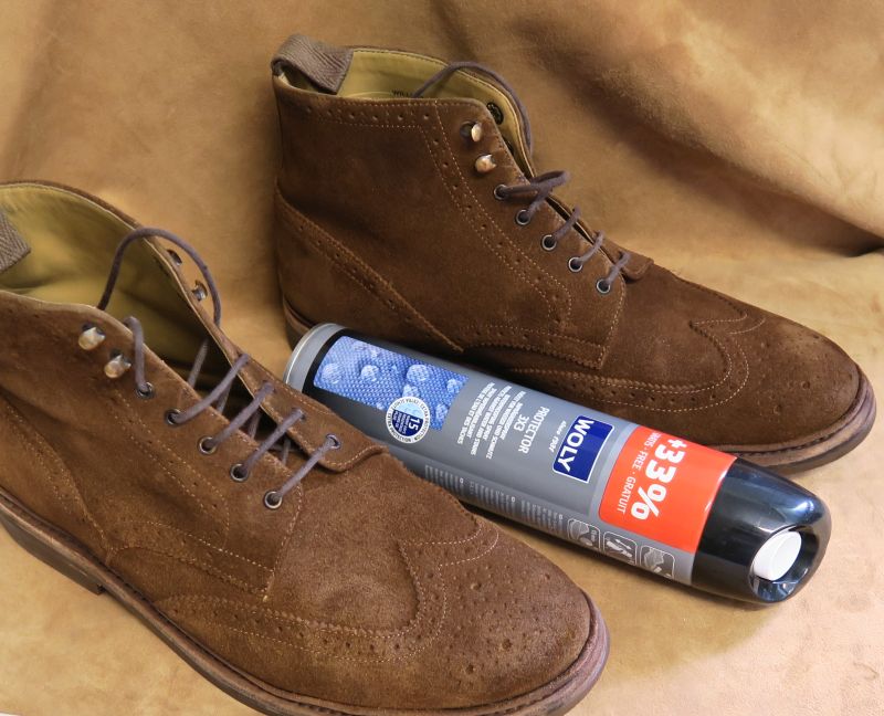 Na końcu pozostaje zabezpieczenie zamszu odpowiednim impregnatem. W tym przypadku zastosowaliśmy impregnat w aerozolu również z firmy Woly. Nie dość, że jest to bardzo skuteczny środek, to jeszcze ma świetny stosunek ceny do jakości ( do kupienia również w naszym sklepie internetowym tutaj ).