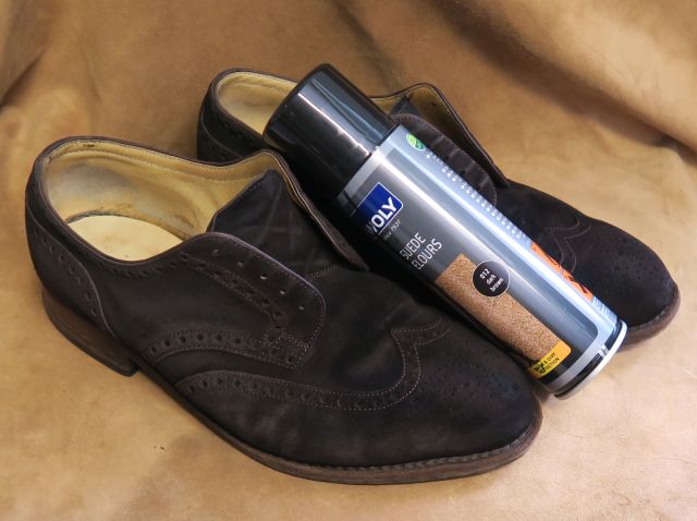 Po czyszczeniu obuwia, zostały zlikwidowane wszelkiego rodzaju zalicowania zamszu. Przywróciliśmy jego naturalną miękkość i elastyczność. Pozostała kwestia renowacji koloru. W tym przypadku użyliśmy renowatora koloru do zamszu firmy Woly. Jest to środek, który charakteryzuje się mocnym kryciem, a jednocześnie nie powoduje wysuszenia skóry, co często jest domeną słabych kosmetyków innych firm. Renowator koloru jest do nabycia w naszym sklepie internetowym tutaj.